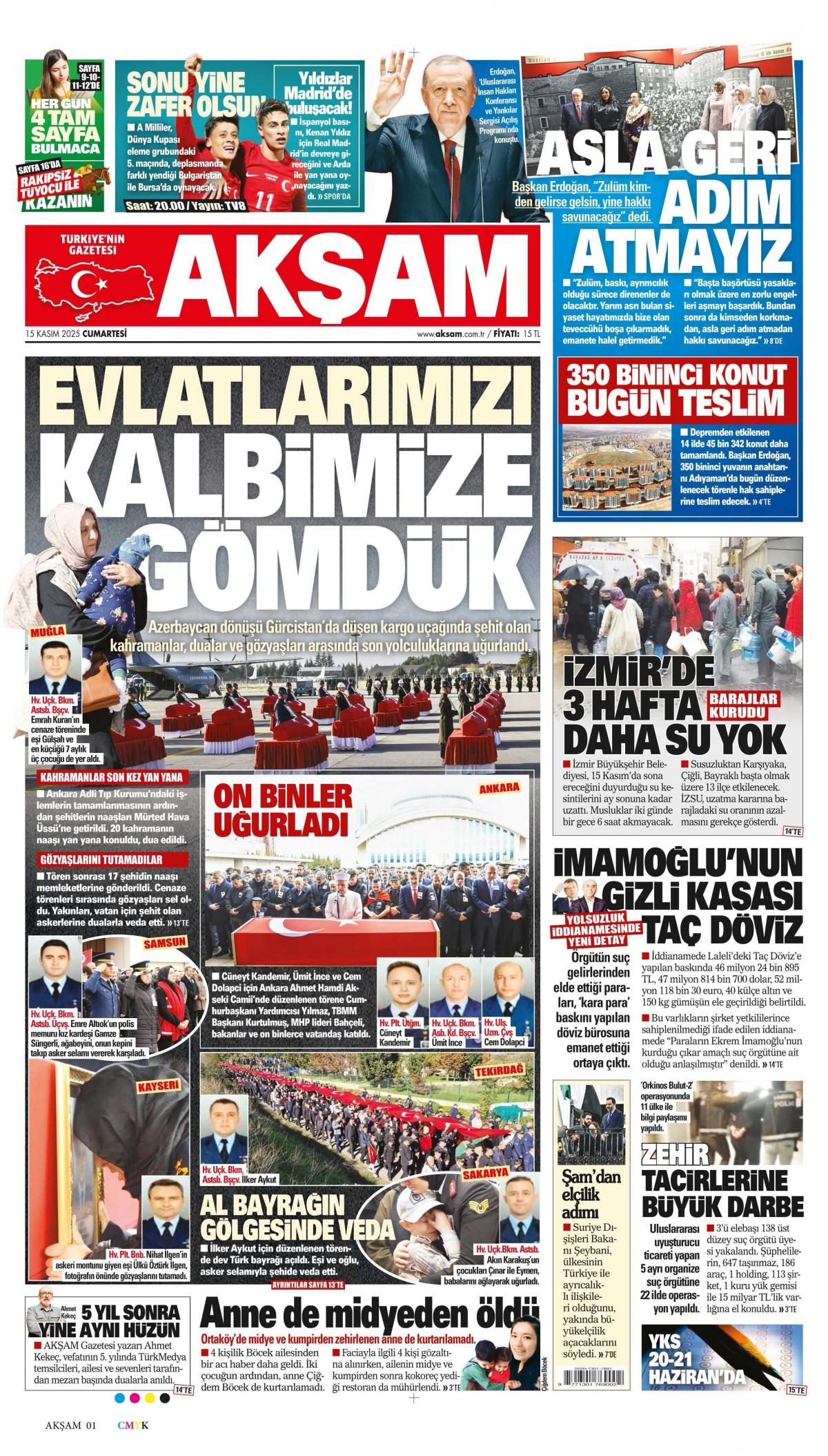 Akşam Gazetesi 16 Kasım 2025 Günü Gazete Manşetleri