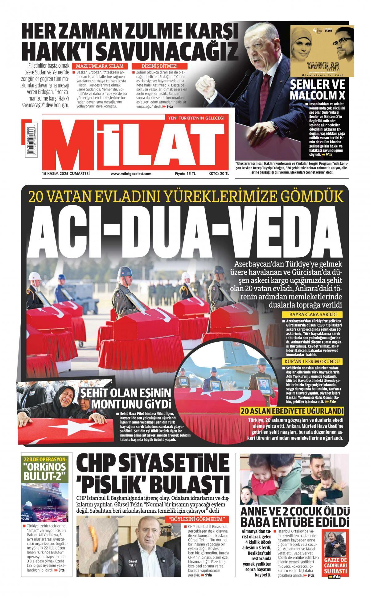 Milat Gazetesi 16 Kasım 2025 Günü Gazete Manşetleri