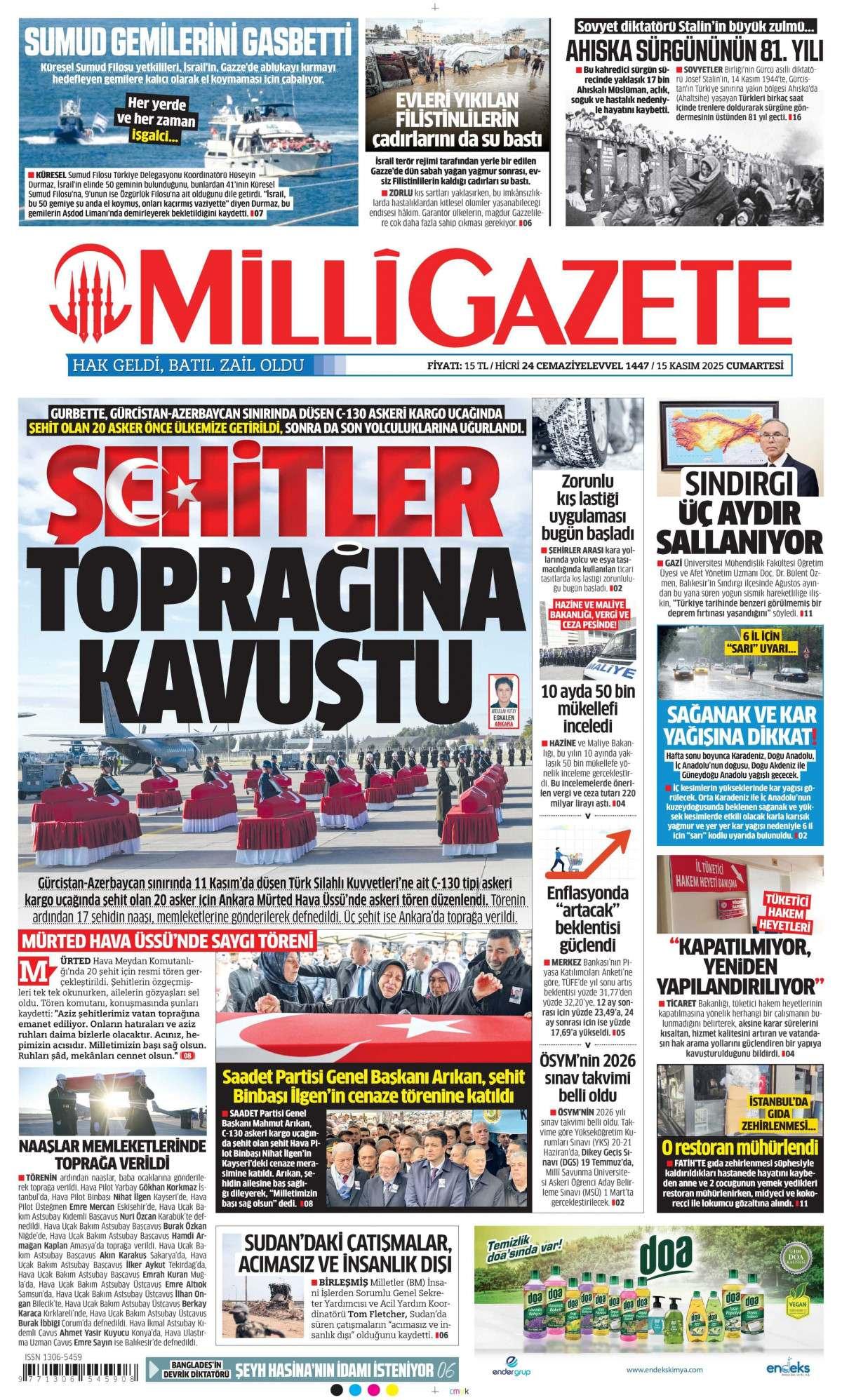 Milli Gazetesi 16 Kasım 2025 Günü Gazete Manşetleri