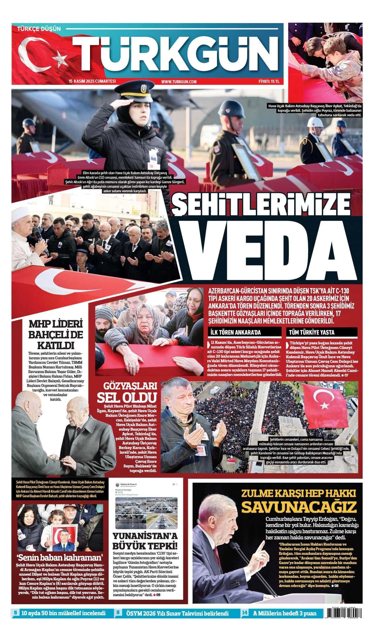Türkgün Gazetesi 16 Kasım 2025 Günü Gazete Manşetleri