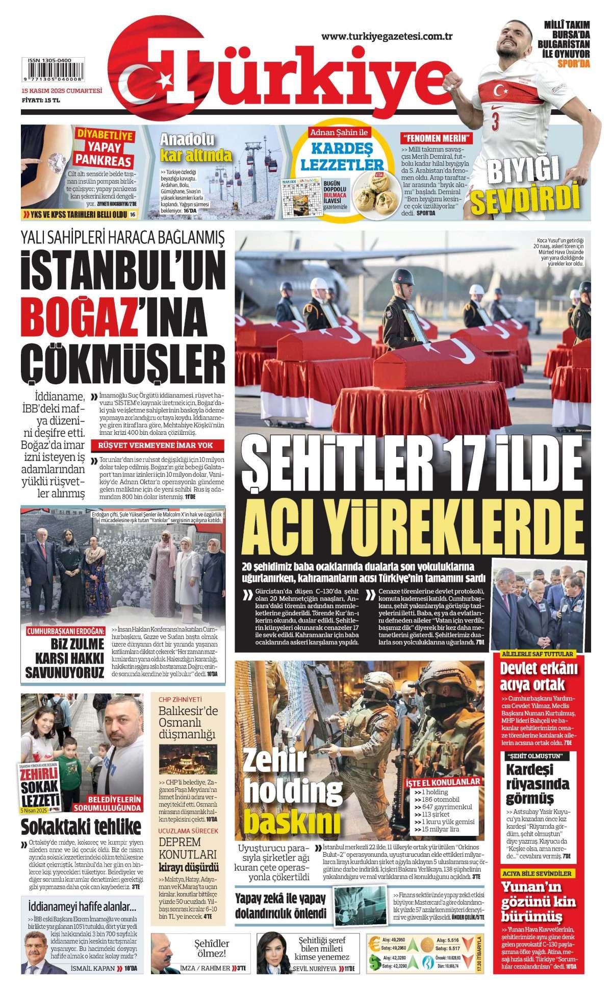 Türkiye Gazetesi 16 Kasım 2025 Günü Gazete Manşetleri