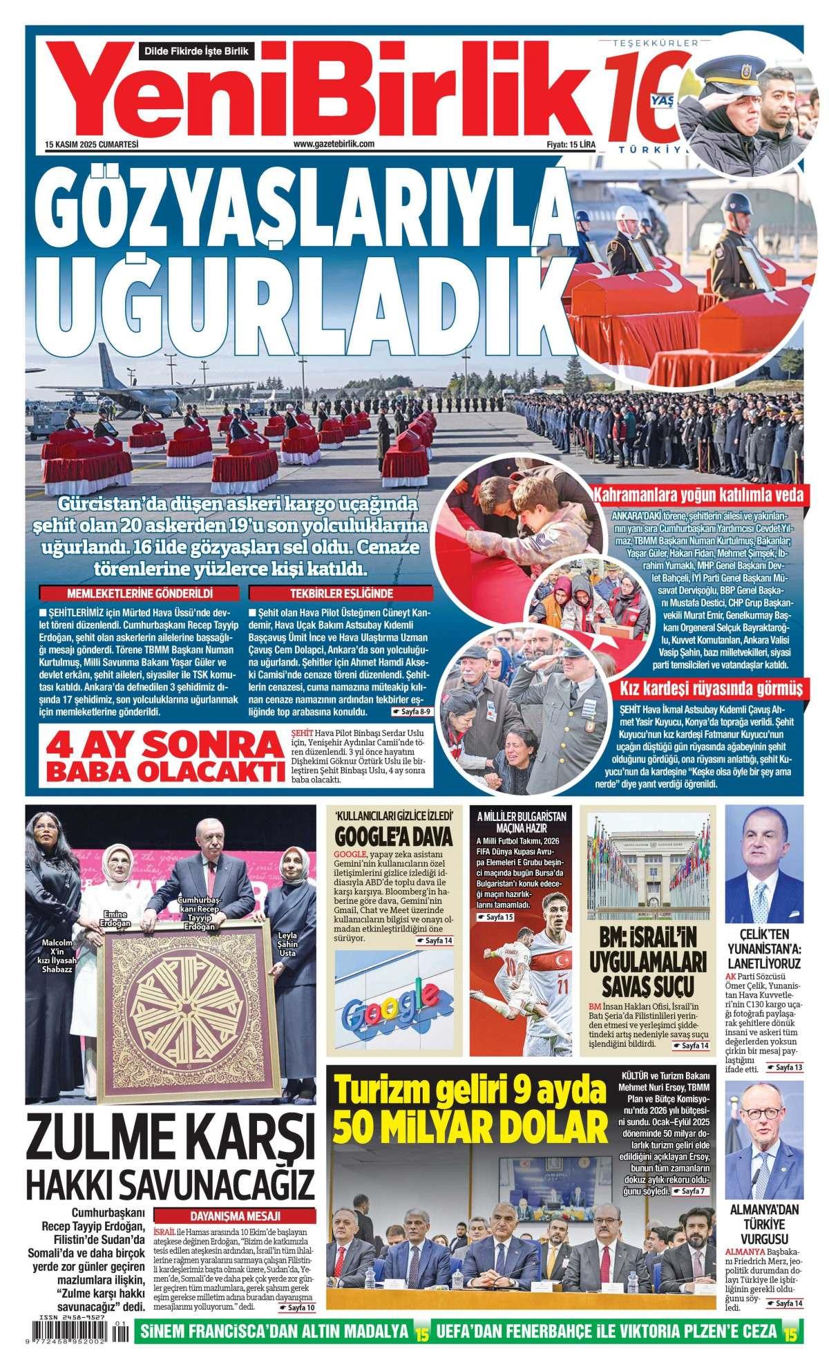 Yeni Birlik Gazetesi 16 Kasım 2025 Günü Gazete Manşetleri