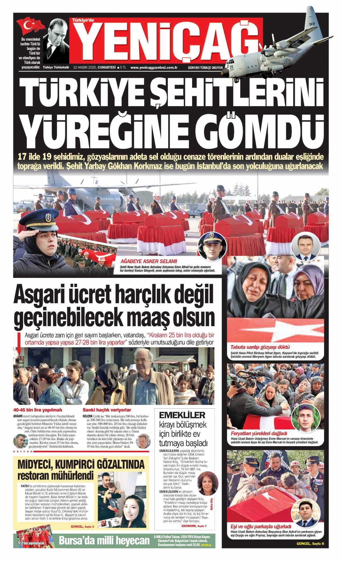 Yeni Çağ Gazetesi 16 Kasım 2025 Günü Gazete Manşetleri